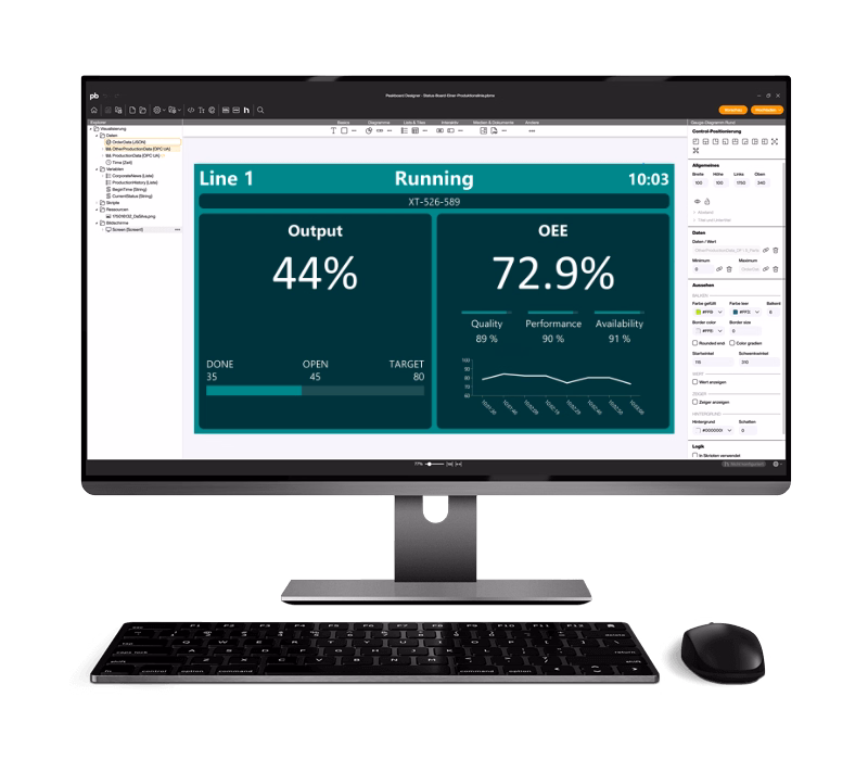 Peakboard offers a flexible Low-code platform for your OEE dashboard: