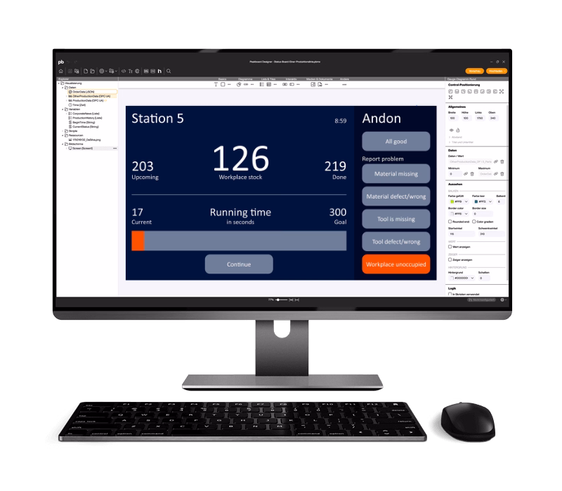 With Peakboard, you create a centralized and flexible solution for your daily shop floor communication – perfectly tailored to your individual workflows.
