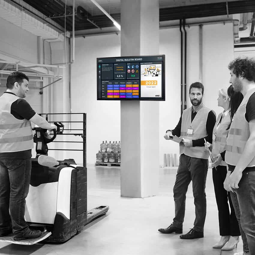 A digital bulletin board is the ideal solution for transparent, efficient and interactive communications in companies. With digital information toward Shift schedules, Production figures and important announcements It ensures smooth coordination and improves team collaboration.