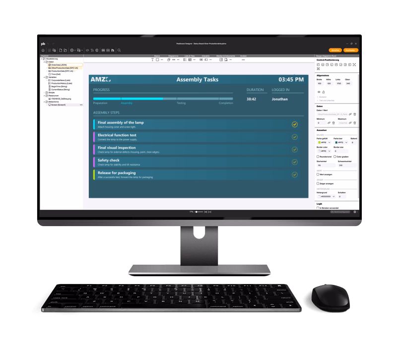Peakboard offers a powerful low-code platform, which adapts flexibly to your production processes: