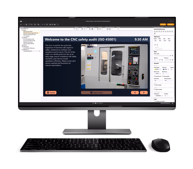 With Peakboard, the entire audit process is digitized — from recording to documentation. Real-time data enables immediate control and reduces sources of error, so you always have a full overview and can react quickly to deviations.